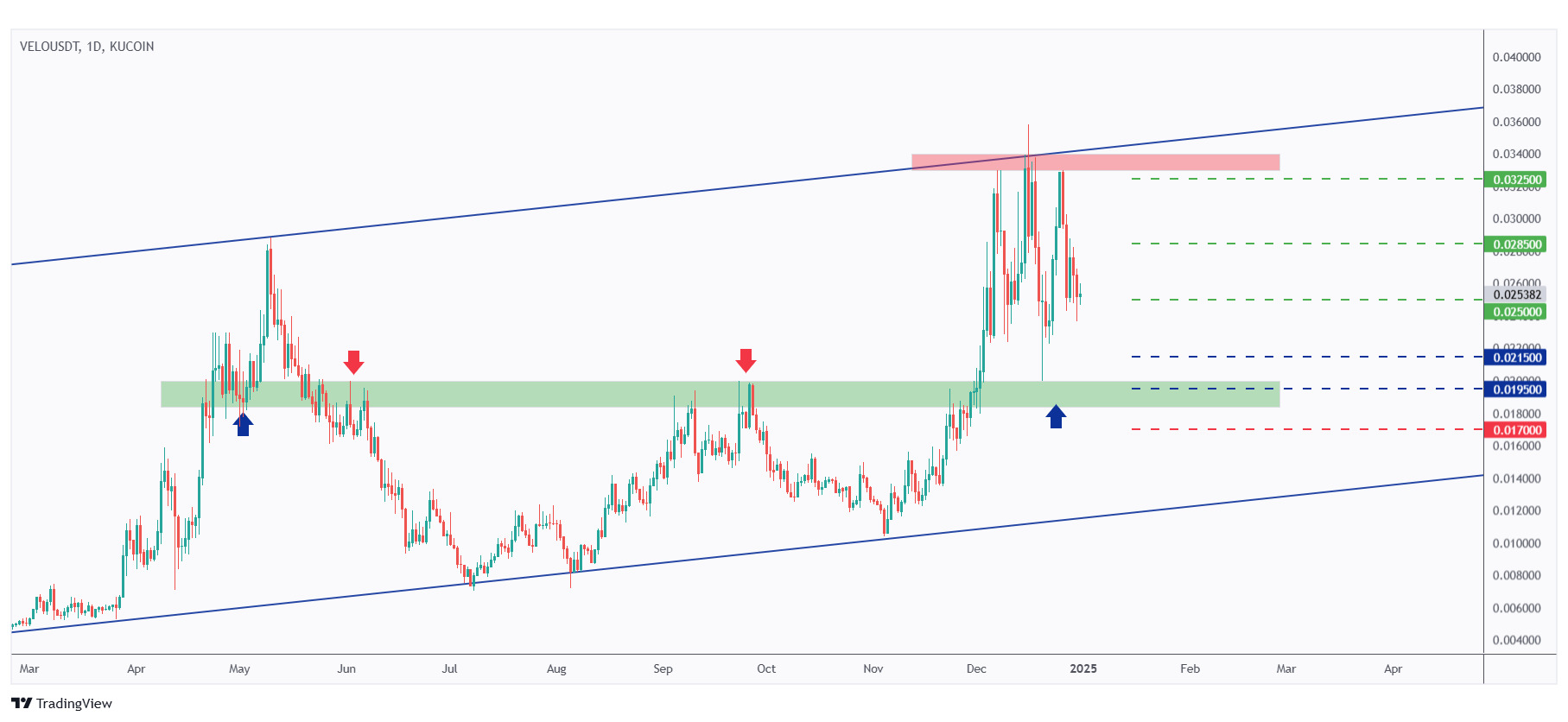 From a technical analysis perspective, VELO has demonstrated resilience during this bearish phase, as it continues to trade within a long-term rising channel marked in blue.