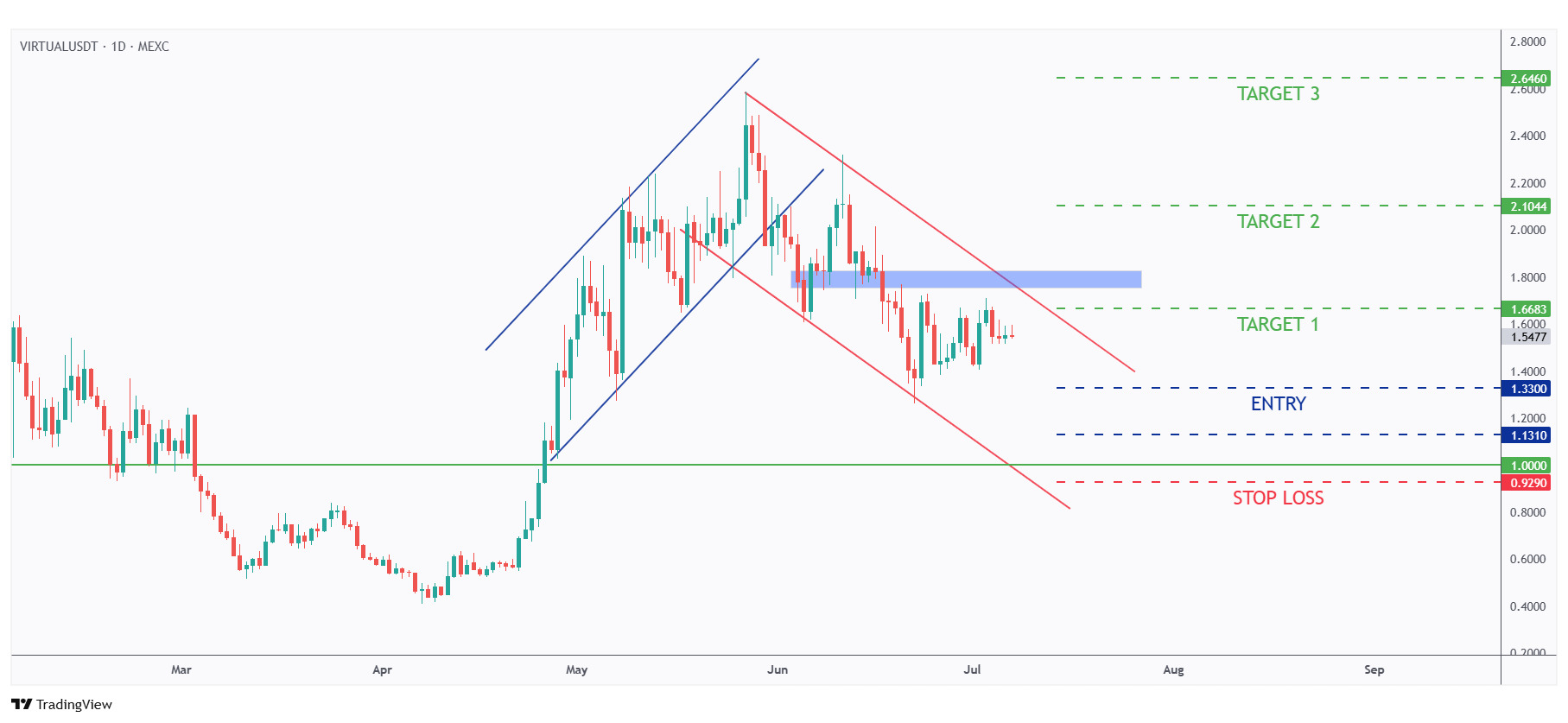From a technical perspective, VIRTUAL is retesting a major support level at the $1 round number, where a bullish reaction is likely to occur.