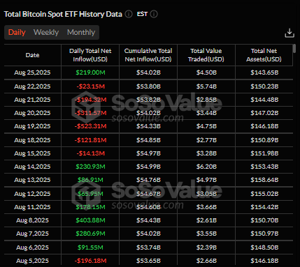 Retail investors panicked to sell, but institutions took advantage. Spot Bitcoin ETFs witnessed $219 million in net inflows following six days of redemptions. Institutional corporate buyers and MicroStrategy allegedly bought more than 3,000 BTC on the downtrend.