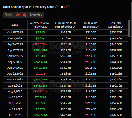 Bitcoin (BTC) was the leader as the main source of these inflows, with $2.7 billion on the week. That leaves year-to-date Bitcoin inflows at $30.2 billion, although it remains about 30% behind last year’s pace at $41.7 billion. The consistent demand for Bitcoin saw weekly volumes hit an all-time high of $53 billion, including a record $15.3 billion on the day of the crash.