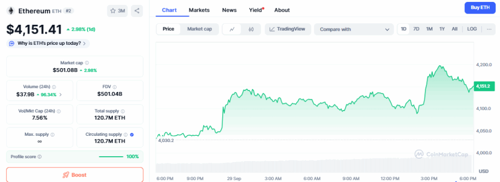 Ethereum (ETH) also increases, gaining approximately 3.8% today. The token’s current price range has had investors closely monitoring key price levels, particularly the overhead supply area of $4,300 to $4,350. If Ethereum is supported in the $4,000-$4,100 zone, it can extend towards much higher levels, perhaps $4,500. As per InvestingHaven, growing demand for Ethereum’s network is driving this trend of the bull.