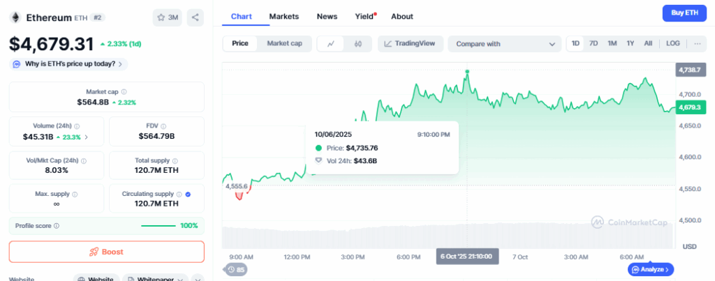 Ethereum price has regained the $4,700 mark, showing strong bullish momentum following its break above $4,000. The bounce is being driven by massive inflows and change in market mood, notably experts now targeting $7,331 as the next target.