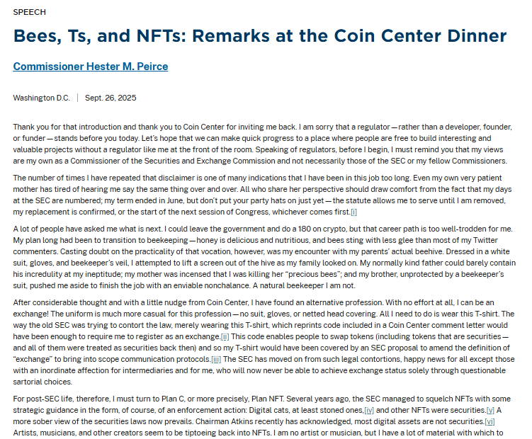 In the meantime, Hester Peirce, “Crypto Mom,” has been an outspoken advocate for more clearly established regulations on digital assets. In her recent speech, she spoke of regret for the SEC’s past actions and the importance of a more encouraging regulatory climate. Peirce made light of her upcoming activities with NFTs, pointing to her support for constructive innovation in the space.