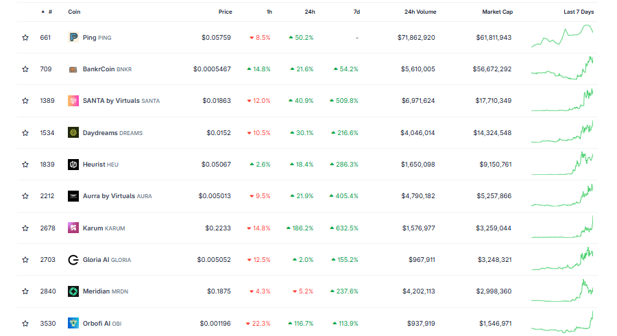 CoinGecko has listed an emerging list of x402-related tokens with a total market capitalization of $176 million. Some of them include tokens such as PING, whose price rose by 35% shortly after the announcement of x402.