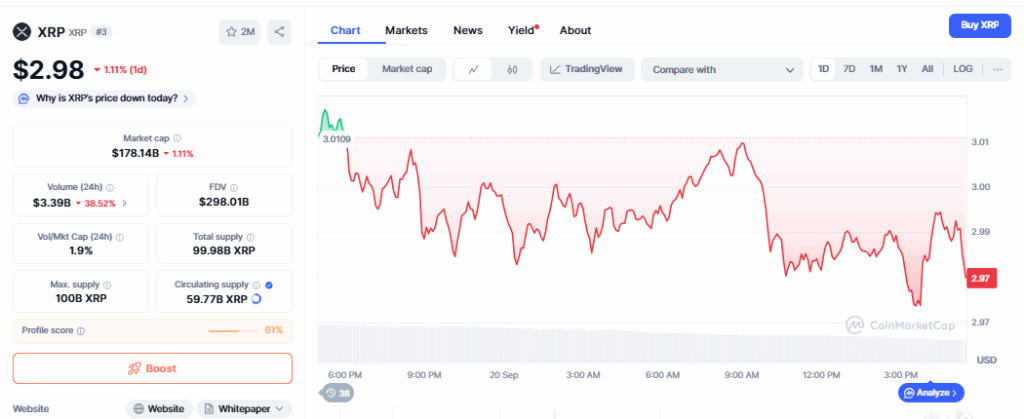 XRP is experiencing a large rally in demand and is now trading at $2.95. The level is a key support level with room for further upside. Institutional investors such as JPMorgan and BlackRock are slowly accumulating positions, and that reflects extremely strong confidence in the potential of XRP.